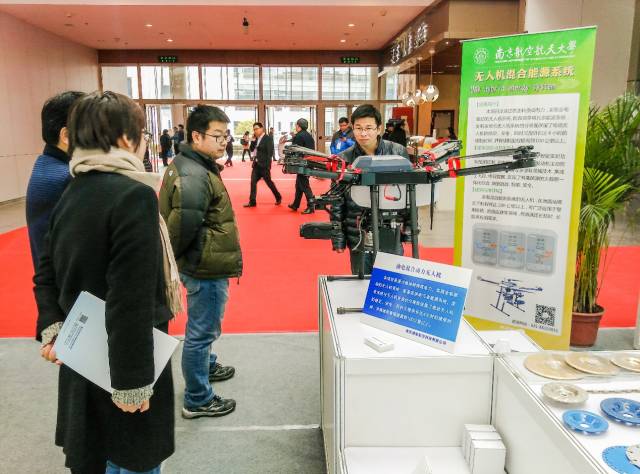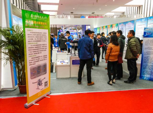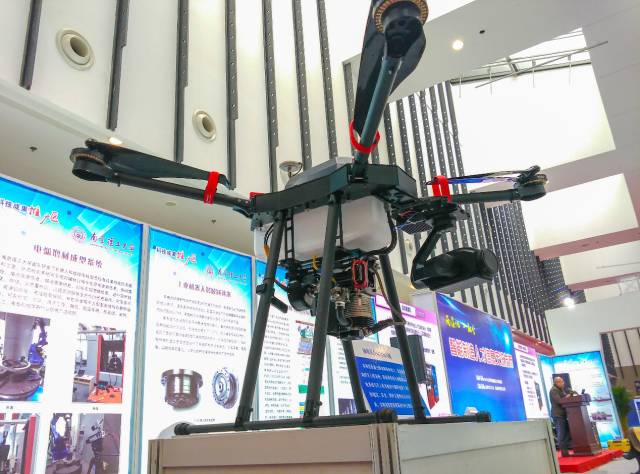 南京婆娑航空科技有限公司携手南京航空航天大学、南京理工大学共同亮相,这次参展的主要产品是油电混动四旋翼无人机。